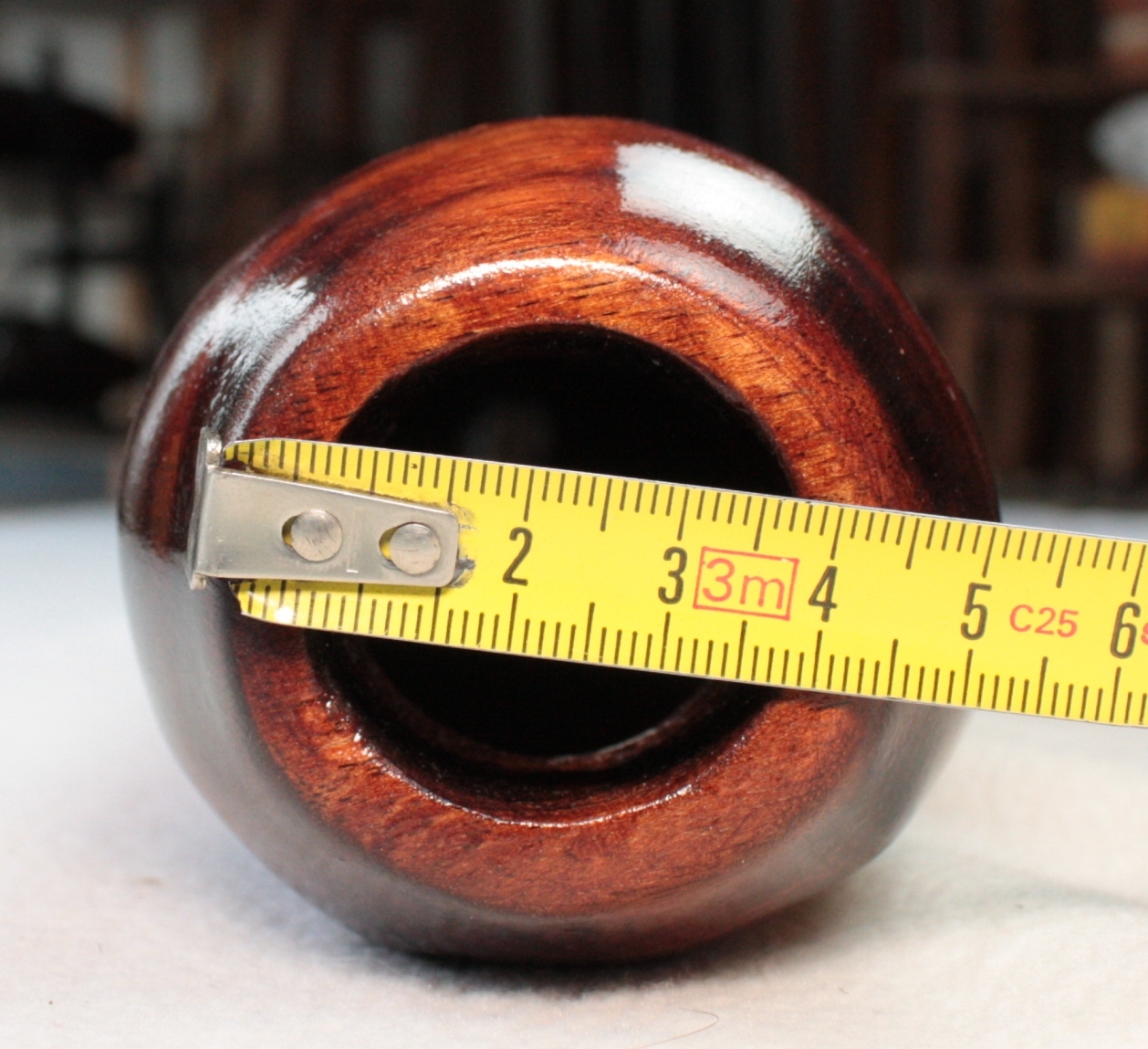 The diameters are measured with a caliper, start of the air column after the mouthpîece. This ratio is very reliable for a didg having a air column with a 'smooth' internal work, in the case of a hollowed eucalyptus instrument it give an approach of the instrumental character.