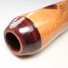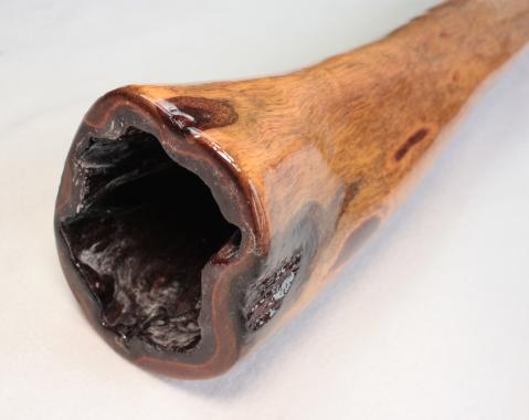 What is the difference with Top didge class? The type of trunk mainly used. Please note that budget didges and top didges come from the same cuts of wood. However, the manufacturing requirement of the top didge class means that Tristan has put trunks aside. The type of internal air column, and very often the length, did not allow Tristan to produce a top-class instrument. He then decided to launch a new category with the surplus trunks: The Budget didge class , ideal for getting started with the didgeridoo with a quality instrument that is, above all, easy to play. Or simply for a player wanting to get their hands on a versatile eucalyptus instrument on a low budget! However Tristan cannot spend the same time on finishing the instruments at this price, he does his best to obtain a suitable finish by prioritizing the acoustic quality of the instrument. All Budget Didges have a wooden (camphor) mouthpiece.