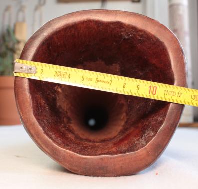 The diameters are measured with a caliper, start of the air column after the mouthpîece. This ratio is very reliable for a didg having a air column with a 'smooth' internal work, in the case of a hollowed eucalyptus instrument it give an approach of the instrumental character.