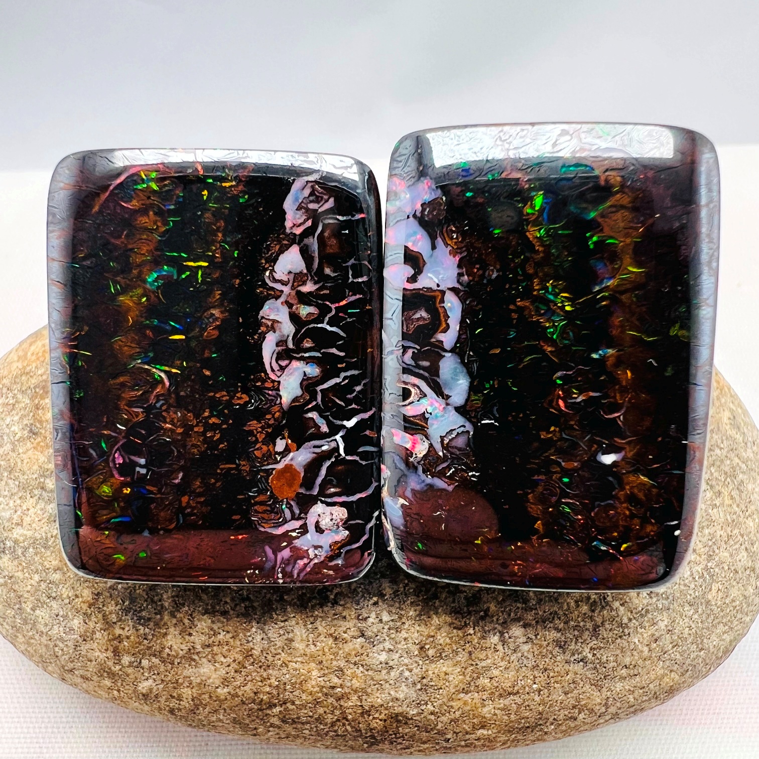 Dark Iron Matrix Boulder Opal Pair, Natural Stone Australia
