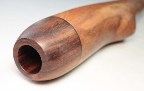 Either the natural hole is the right diameter and in this case Bruce works the mouthpiece in a natural way. Either he inserts a mouthpiece made of camphor wood known for its antibacterial qualities. Bruce and the only manufacturer to use this kind of insert technique. A real plus for obtaining a most comfortable and antibacterial mouthpiece.