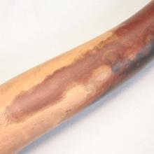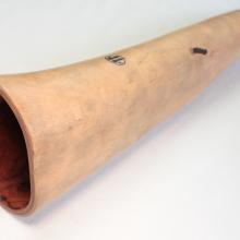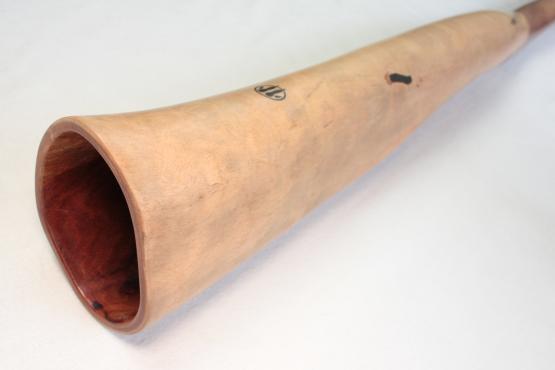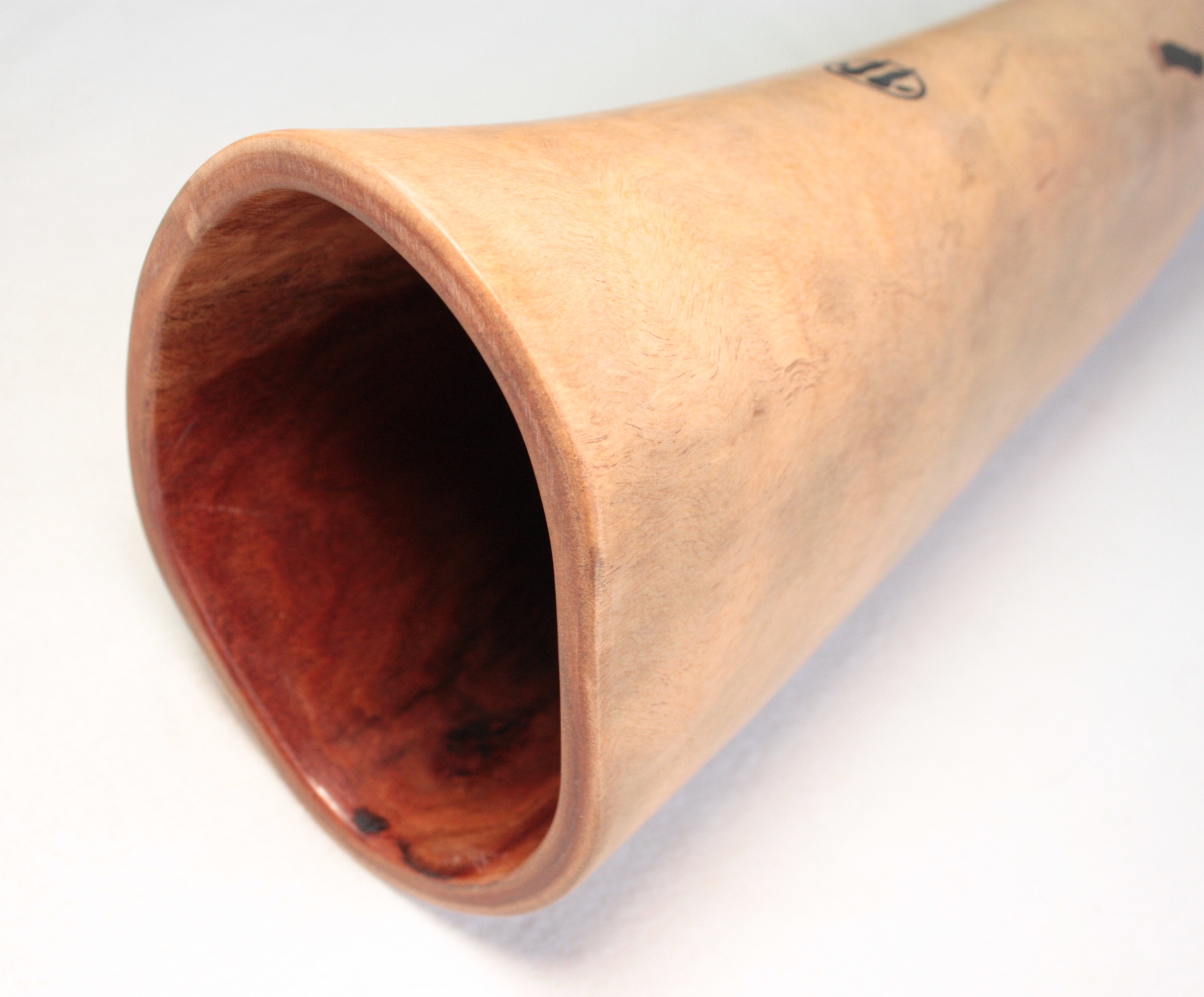All of its termite didges come from North Queensland and cut by a renowned Aboriginal owner. All its trunks were dried for a minimum of 12 months before being worked. Bruce does not use wax to reduce the size of his mouthpieces.