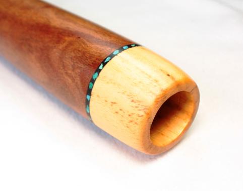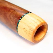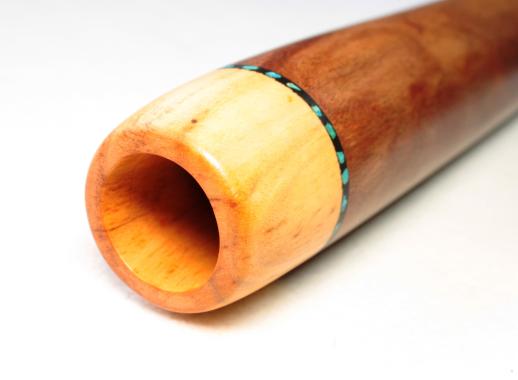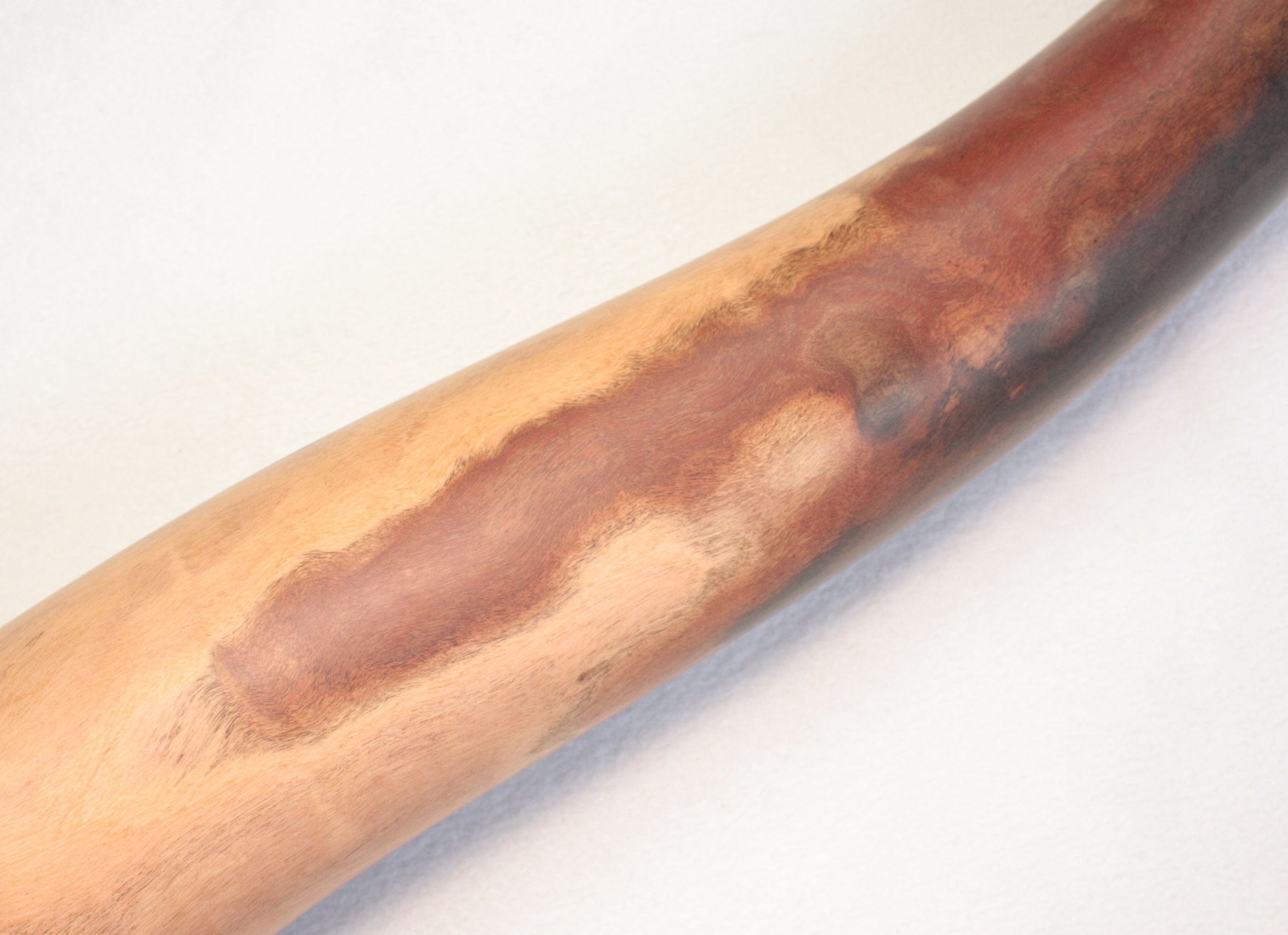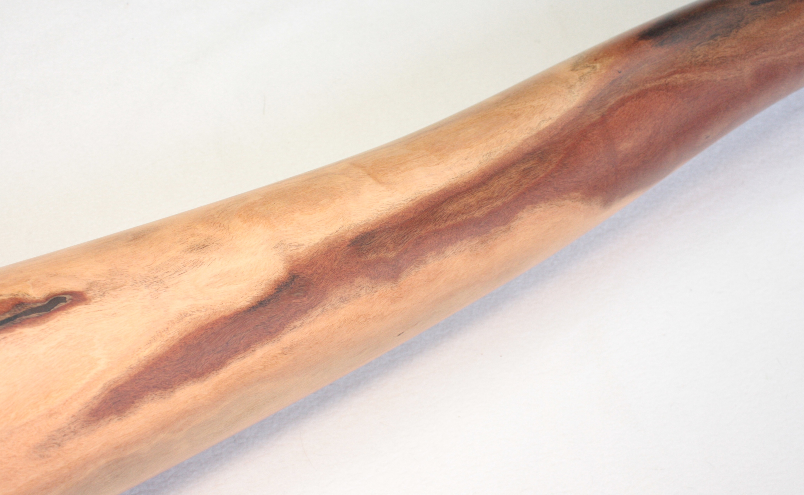 Just looking at the shape of this didgeridoo is enough to tell you it packs a punch. I love the conical column at the start, then opening up at the bell. Clearly designed for playing and responding to tongues! Ash mouthpiece with opal inlays from Lightning Ridge.