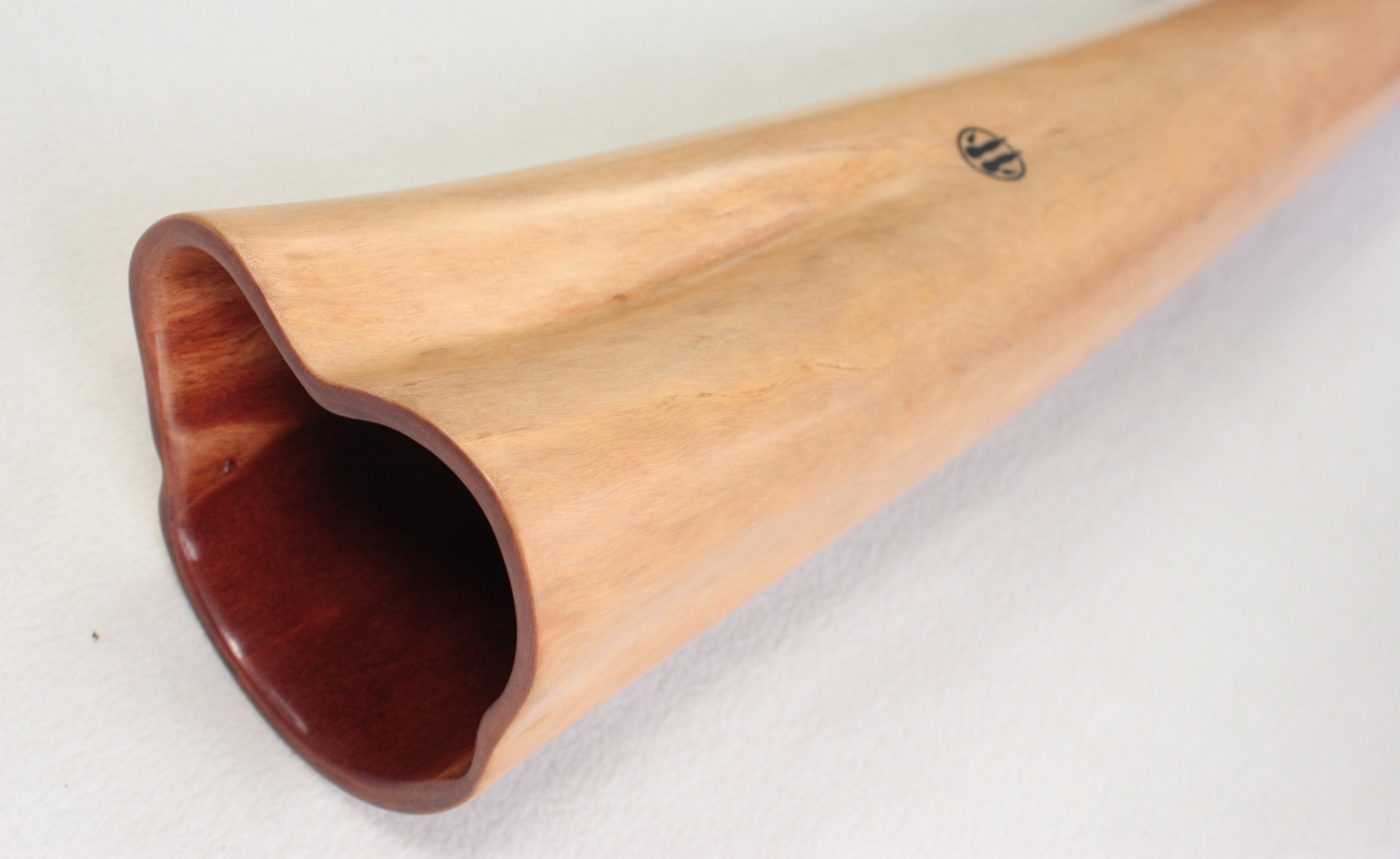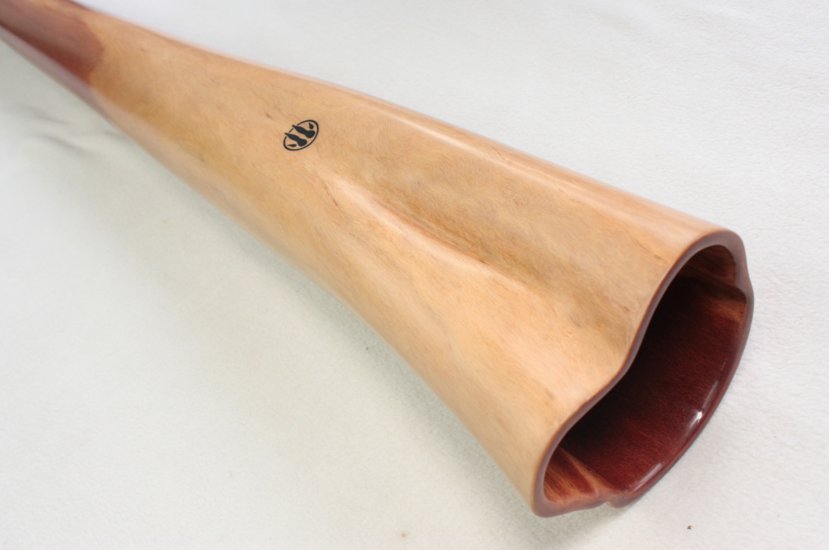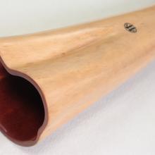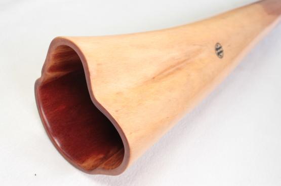 You might ask why "Favourite"? It means "preferred" in French. Quite simply because it's one of Bruce, the maker's, latest favorite instruments. He hinted to me that he wanted to keep it for his personal collection. Indeed, I appreciate it very much too! Precise, balanced, and full-bodied. The progressive bell opening gives it a unique resonance and playing balance. It has a white tulip oak mouthpiece with opal inlays from Lightning Ridge.