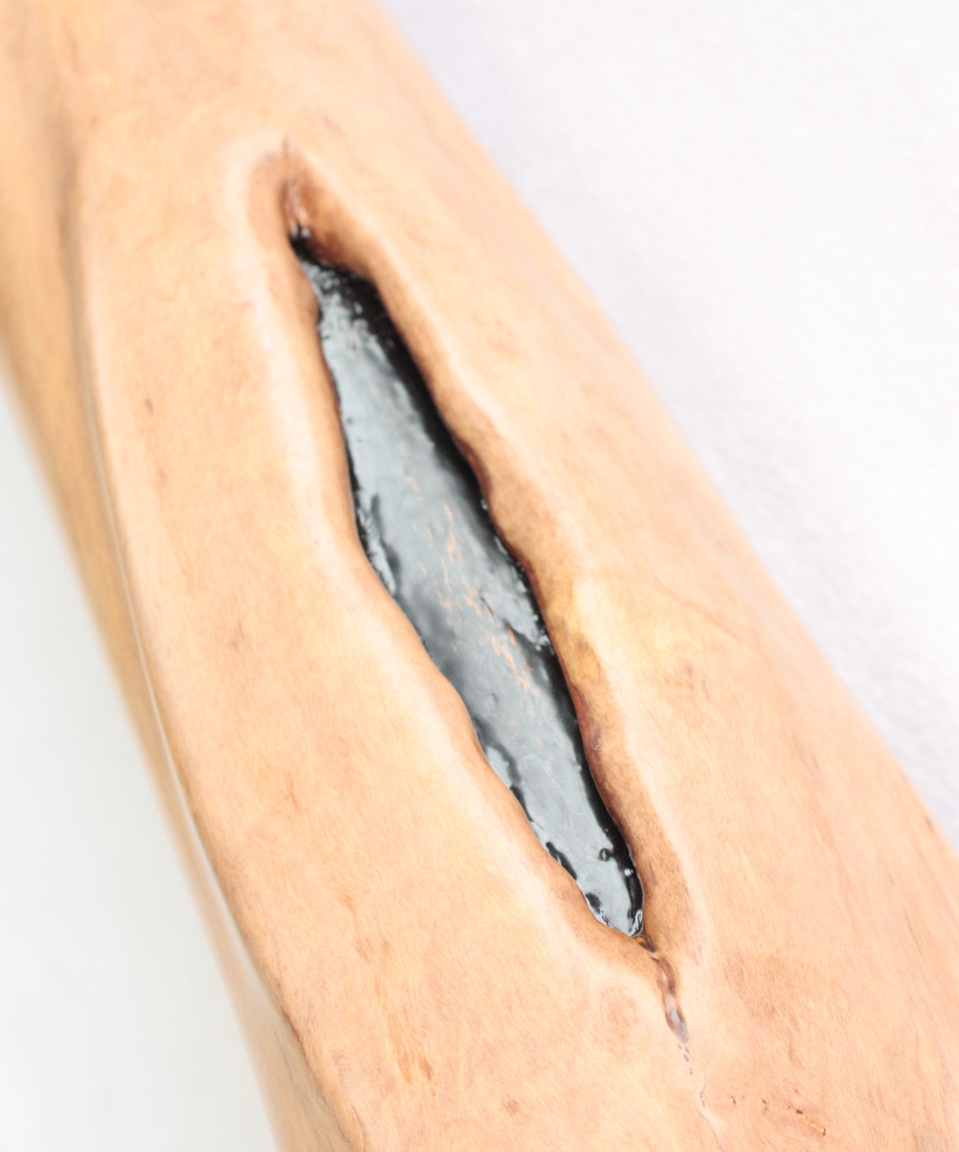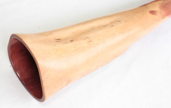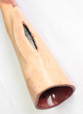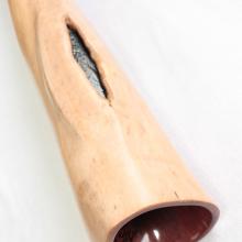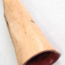 All of its termite didges come from North Queensland and cut by a renowned Aboriginal owner. All its trunks were dried for a minimum of 12 months before being worked. Bruce does not use wax to reduce the size of his mouthpieces.