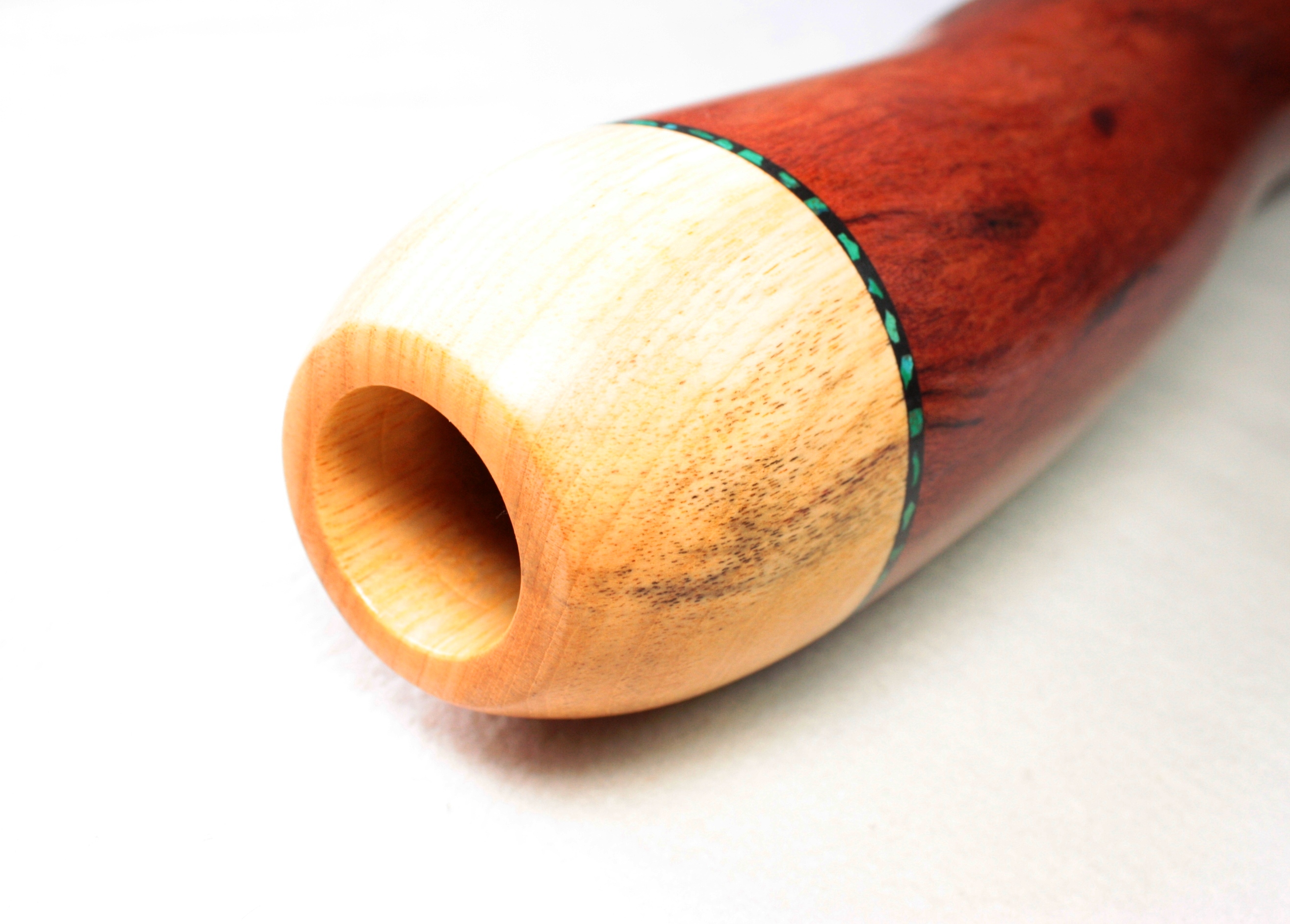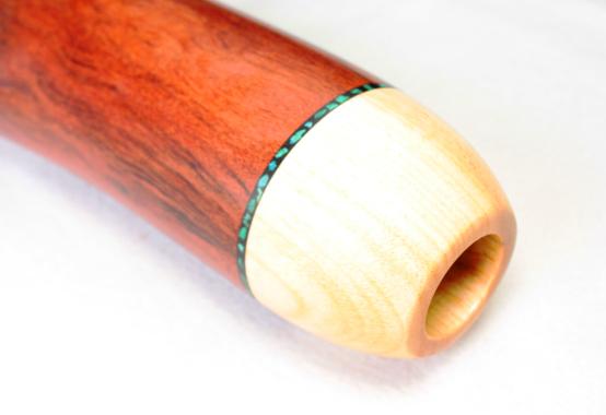 Either the natural hole is the right diameter and in this case Bruce works the mouthpiece in a natural way. Either he inserts a mouthpiece made of camphor wood known for its antibacterial qualities. Bruce and the only manufacturer to use this kind of insert technique. A real plus for obtaining a most comfortable and antibacterial mouthpiece.