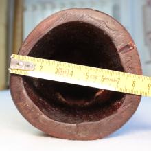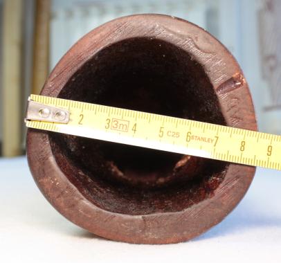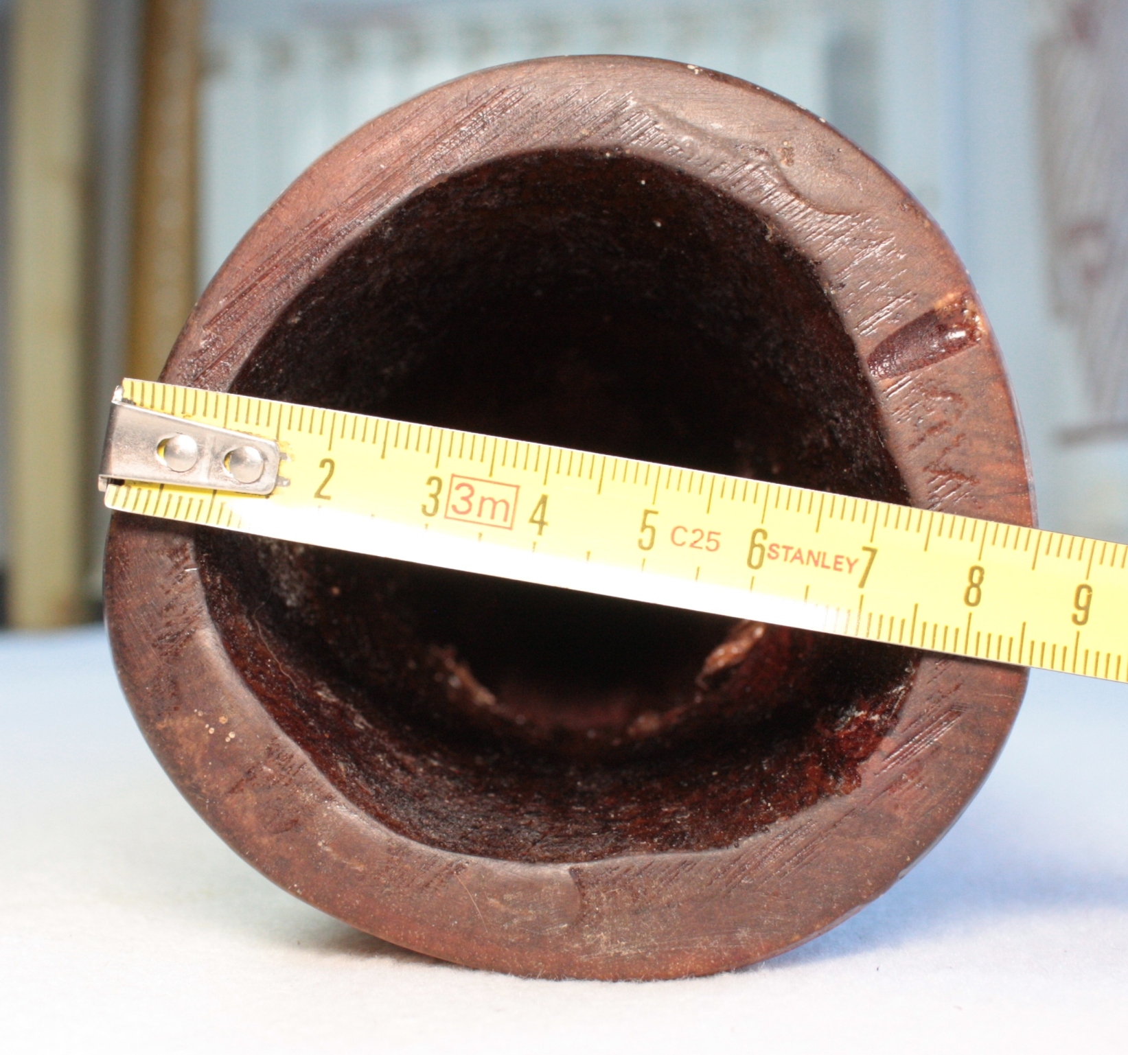 Les diamètres sont mesurés au pied à coulisse, au départ de la colonne d'air après l'embouchure. Attention ce ratio est très fiable pour un didgeridoo avant une colonne d'air avec un travail interne quasi 'lisse'. Dans le cas des instruments avec des zones de compressions, ou boules de résonance, comme ceux de Dubravko, ce ratio est difficilement calculable avec 100% de certitude. Egalement pour les didgeridoos en eucalyptus avec des galeries de termite, il arrive que le diamètre de départ de la colonne d'air ne soit pas cylindrique et fasse par exemple 4.4x3.8cm. Dans ce cas je prends comme valeur de diamètre de départ de colonne, la moyenne de ces deux chiffres. A savoir: (4.4+3.8)/2=4.1cm. Il en va de même pour la valeur de la cloche. Cela permet de donner une approche du caractère instrumental assez fidèle mais qui ne peut être mesurée avec 100% d'exactitude.