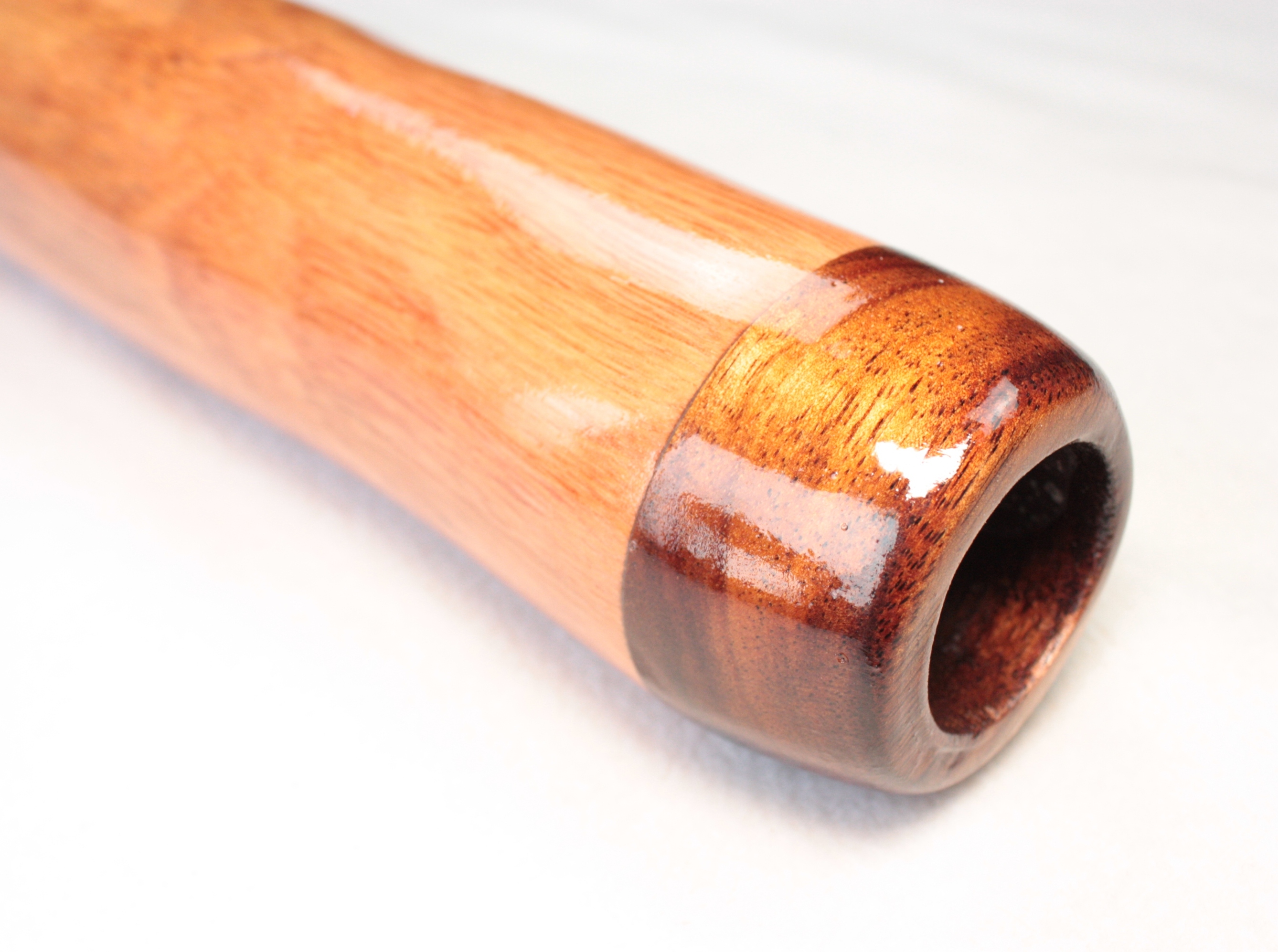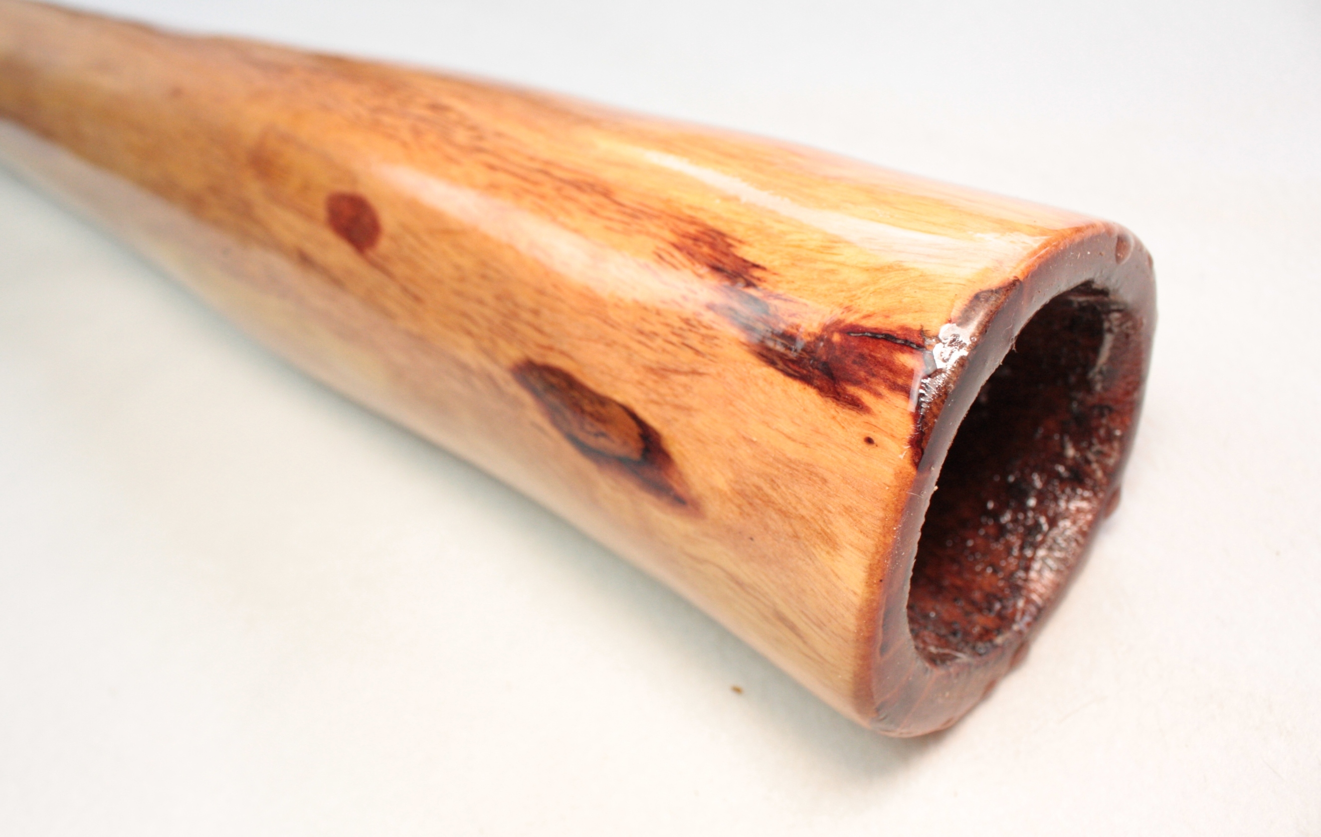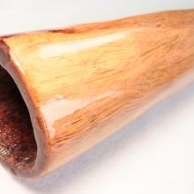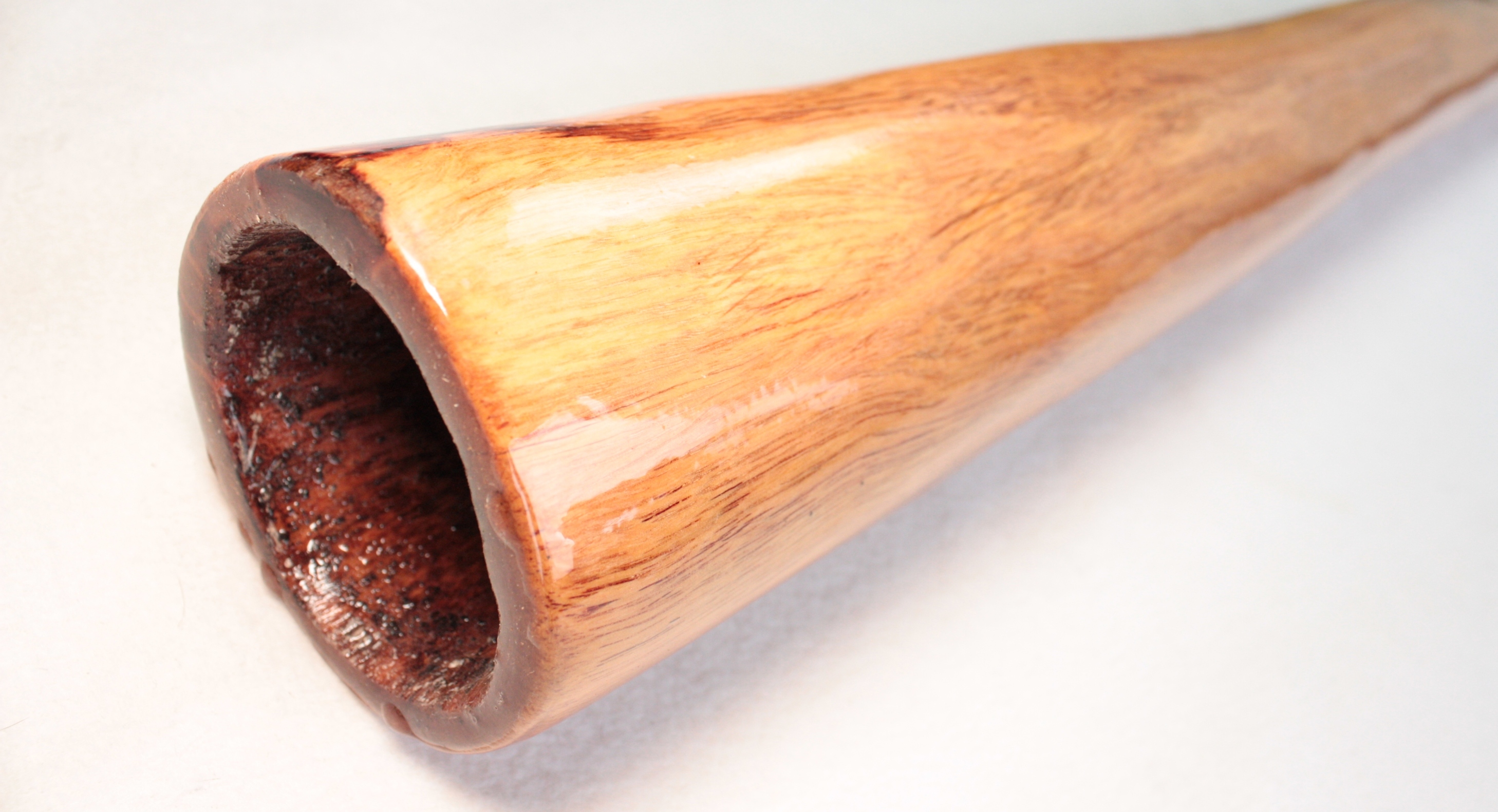 Tous mes didges sont 100% faits par moi-même du début à la fin, ils sont tous fabriqués à la main avec l'aide de quelques outils électriques pour le ponçage. Ils sont recouverts à l'intérieur et à l'extérieur avec un mélange d'huiles naturelles bois et laisser tremper pendant 24 heures, afin de saturer le bois et ainsi accentuer les couleurs naturelles mais également pour pénétrer profondément dans les fibres du bois afin de le durcir et cristalliser, ce qui augmente la densité du bois et la qualité de son dans l'instrument. Ils sont ensuite terminés à l'extérieur avec plusieurs couches de résine époxy de haute qualité, résistante aux UV et flexible.