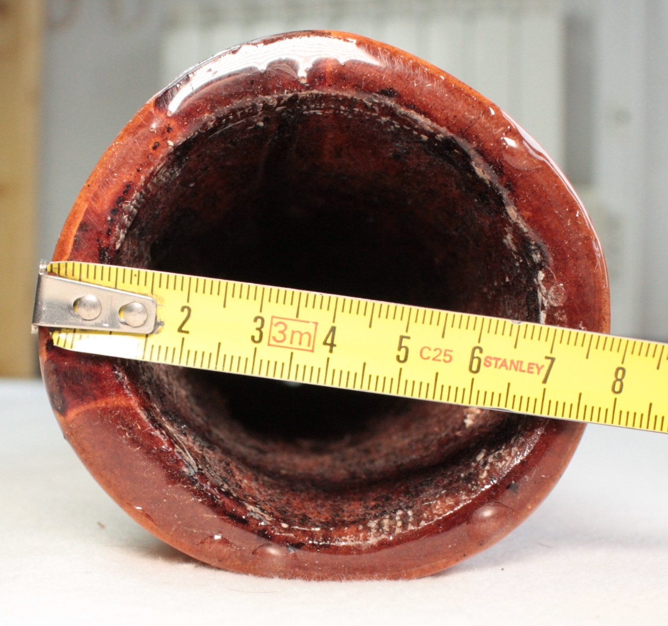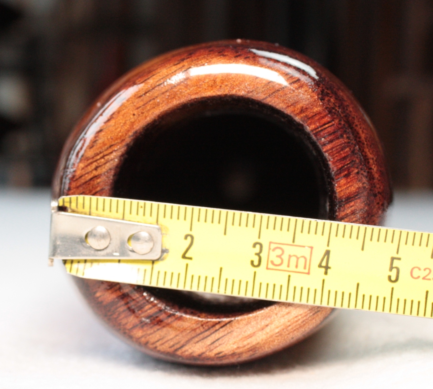 Les diamètres sont mesurés au pied à coulisse, au départ de la colonne d'air après l'embouchure. Attention ce ratio est très fiable pour un didgeridoo avant une colonne d'air avec un travail interne quasi 'lisse'. Dans le cas des instruments avec des zones de compressions, ou boules de résonance, comme ceux de Dubravko, ce ratio est difficilement calculable avec 100% de certitude. Egalement pour les didgeridoos en eucalyptus avec des galeries de termite, il arrive que le diamètre de départ de la colonne d'air ne soit pas cylindrique et fasse par exemple 4.4x3.8cm. Dans ce cas je prends comme valeur de diamètre de départ de colonne, la moyenne de ces deux chiffres. A savoir: (4.4+3.8)/2=4.1cm. Il en va de même pour la valeur de la cloche. Cela permet de donner une approche du caractère instrumental assez fidèle mais qui ne peut être mesurée avec 100% d'exactitude.