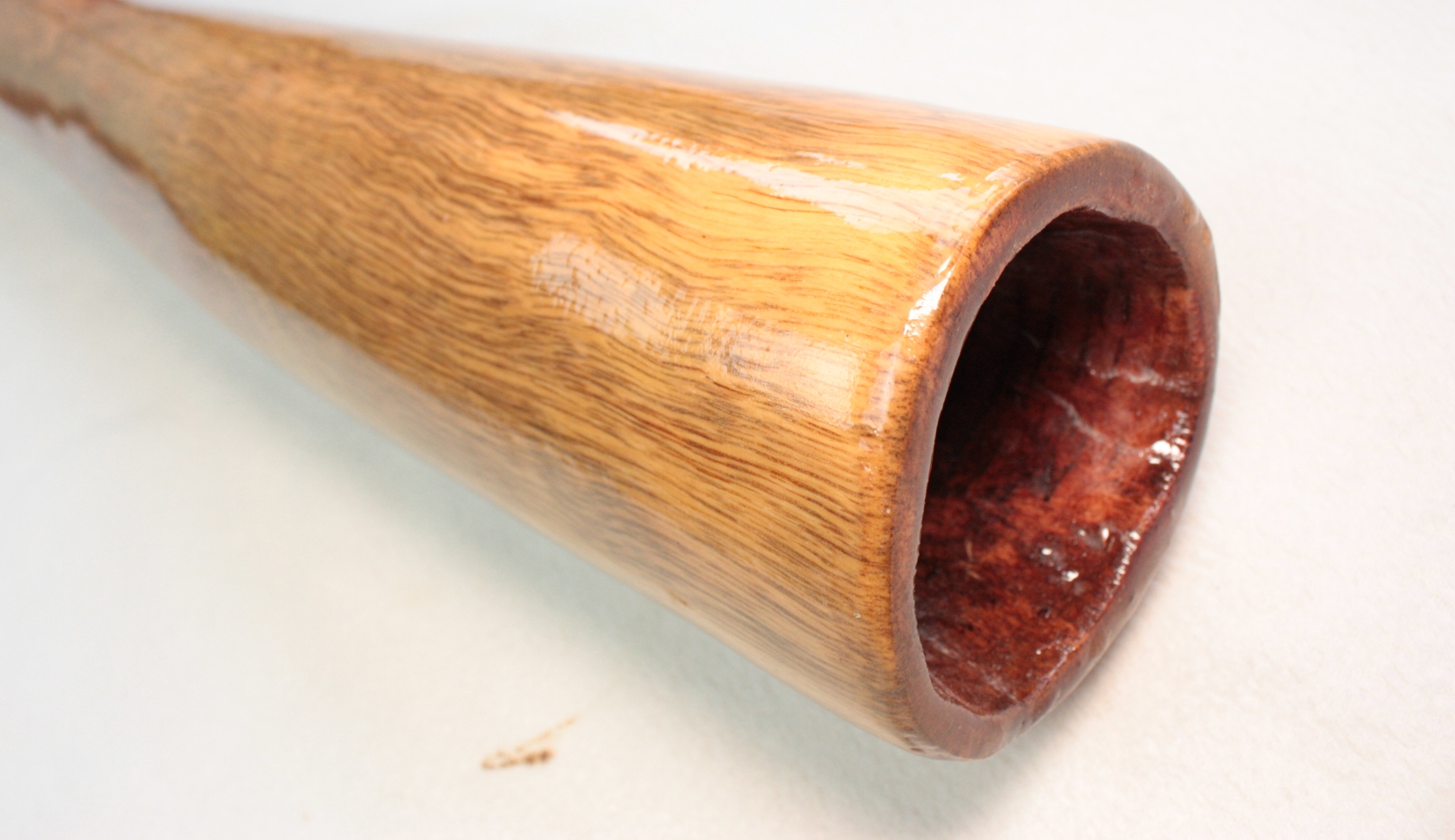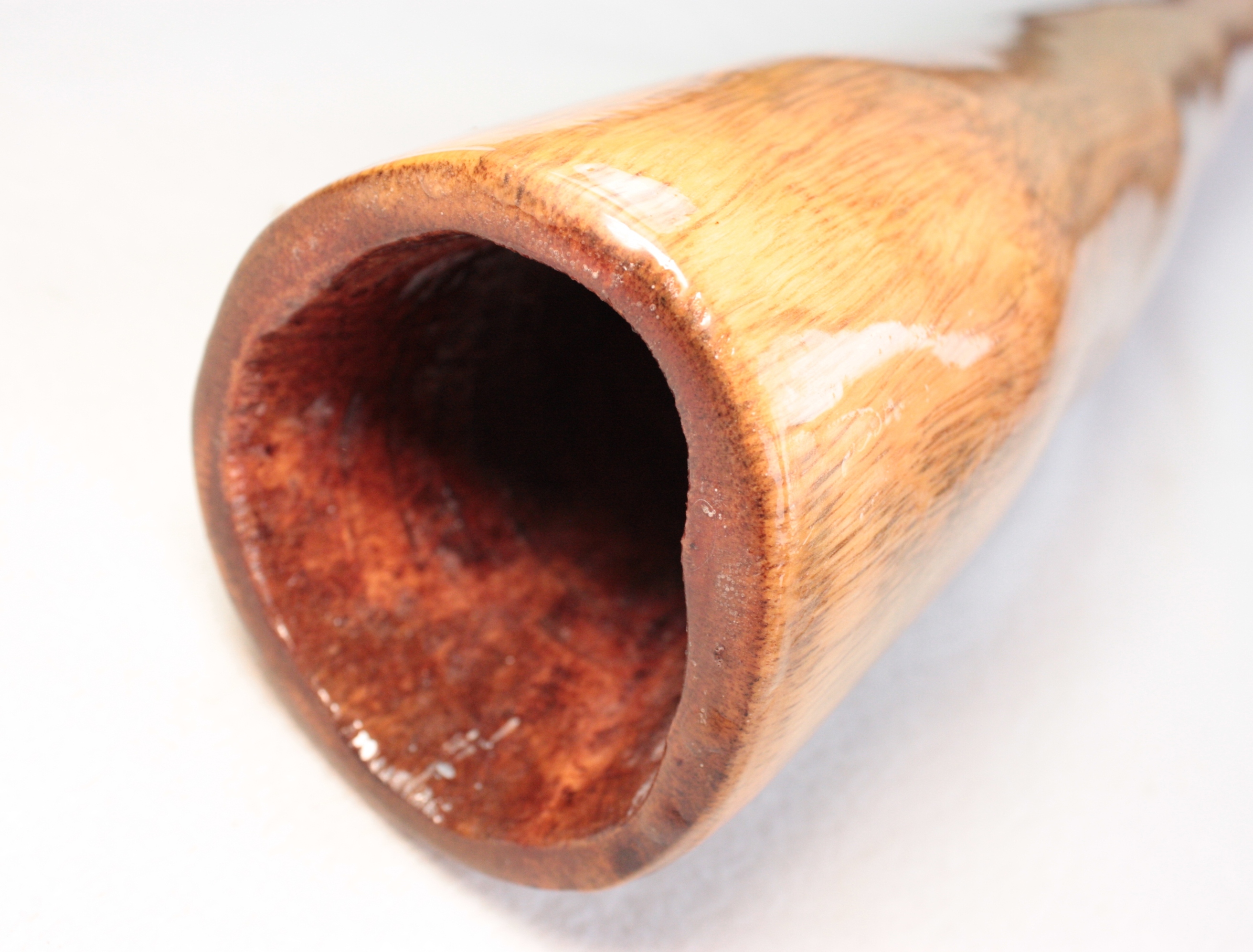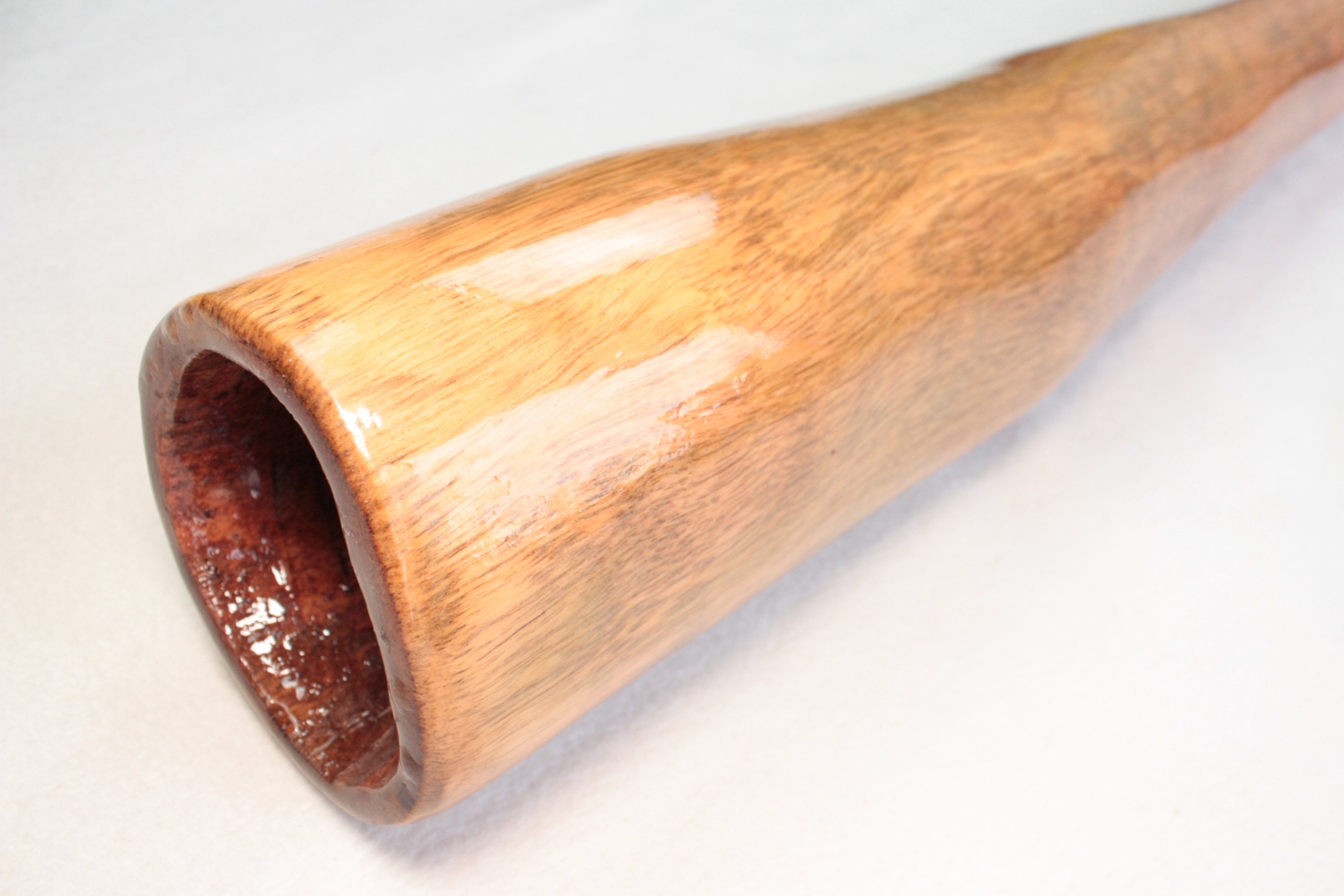 Tous mes didges sont 100% faits par moi-même du début à la fin, ils sont tous fabriqués à la main avec l'aide de quelques outils électriques pour le ponçage. Ils sont recouverts à l'intérieur et à l'extérieur avec un mélange d'huiles naturelles bois et laisser tremper pendant 24 heures, afin de saturer le bois et ainsi accentuer les couleurs naturelles mais également pour pénétrer profondément dans les fibres du bois afin de le durcir et cristalliser, ce qui augmente la densité du bois et la qualité de son dans l'instrument. Ils sont ensuite terminés à l'extérieur avec plusieurs couches de résine époxy de haute qualité, résistante aux UV et flexible.