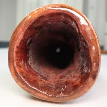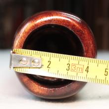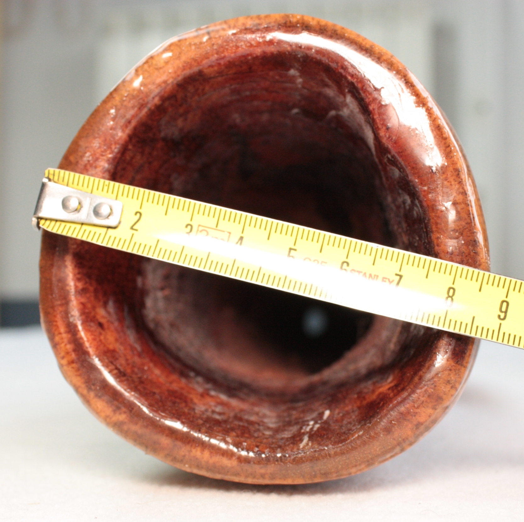 Les diamètres sont mesurés au pied à coulisse, au départ de la colonne d'air après l'embouchure. Attention ce ratio est très fiable pour un didgeridoo avant une colonne d'air avec un travail interne quasi 'lisse'. Dans le cas des instruments avec des zones de compressions, ou boules de résonance, comme ceux de Dubravko, ce ratio est difficilement calculable avec 100% de certitude. Egalement pour les didgeridoos en eucalyptus avec des galeries de termite, il arrive que le diamètre de départ de la colonne d'air ne soit pas cylindrique et fasse par exemple 4.4x3.8cm. Dans ce cas je prends comme valeur de diamètre de départ de colonne, la moyenne de ces deux chiffres. A savoir: (4.4+3.8)/2=4.1cm. Il en va de même pour la valeur de la cloche. Cela permet de donner une approche du caractère instrumental assez fidèle mais qui ne peut être mesurée avec 100% d'exactitude.