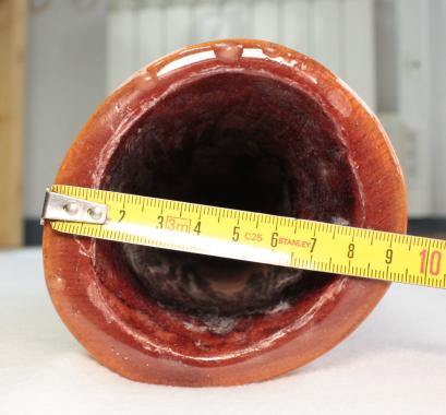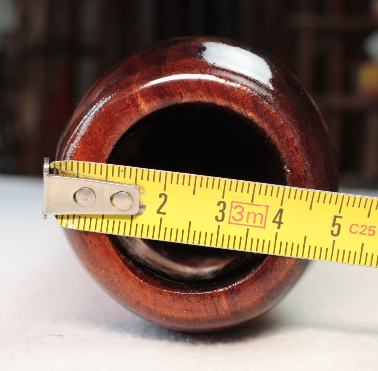 Les diamètres sont mesurés au pied à coulisse, au départ de la colonne d'air après l'embouchure. Attention ce ratio est très fiable pour un didgeridoo avant une colonne d'air avec un travail interne quasi 'lisse'. Dans le cas des instruments avec des zones de compressions, ou boules de résonance, comme ceux de Dubravko, ce ratio est difficilement calculable avec 100% de certitude. Egalement pour les didgeridoos en eucalyptus avec des galeries de termite, il arrive que le diamètre de départ de la colonne d'air ne soit pas cylindrique et fasse par exemple 4.4x3.8cm. Dans ce cas je prends comme valeur de diamètre de départ de colonne, la moyenne de ces deux chiffres. A savoir: (4.4+3.8)/2=4.1cm. Il en va de même pour la valeur de la cloche. Cela permet de donner une approche du caractère instrumental assez fidèle mais qui ne peut être mesurée avec 100% d'exactitude.