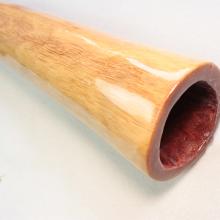 Tous mes didges sont 100% faits par moi-même du début à la fin, ils sont tous fabriqués à la main avec l'aide de quelques outils électriques pour le ponçage. Ils sont recouverts à l'intérieur et à l'extérieur avec un mélange d'huiles naturelles bois et laisser tremper pendant 24 heures, afin de saturer le bois et ainsi accentuer les couleurs naturelles mais également pour pénétrer profondément dans les fibres du bois afin de le durcir et cristalliser, ce qui augmente la densité du bois et la qualité de son dans l'instrument. Ils sont ensuite terminés à l'extérieur avec plusieurs couches de résine époxy de haute qualité, résistante aux UV et flexible.