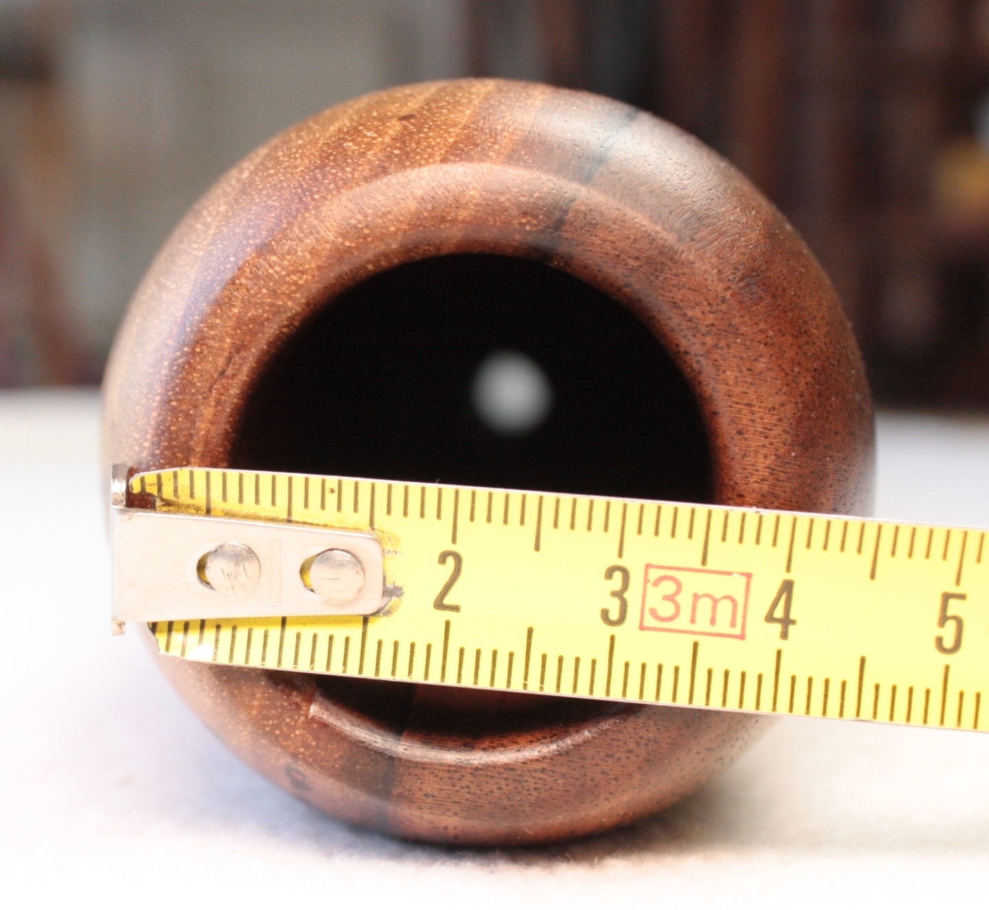 Les diamètres sont mesurés au pied à coulisse, au départ de la colonne d'air après l'embouchure. Attention ce ratio est très fiable pour un didgeridoo avant une colonne d'air avec un travail interne quasi 'lisse'. Dans le cas des instruments avec des zones de compressions, ou boules de résonance, comme ceux de Dubravko, ce ratio est difficilement calculable avec 100% de certitude. Egalement pour les didgeridoos en eucalyptus avec des galeries de termite, il arrive que le diamètre de départ de la colonne d'air ne soit pas cylindrique et fasse par exemple 4.4x3.8cm. Dans ce cas je prends comme valeur de diamètre de départ de colonne, la moyenne de ces deux chiffres. A savoir: (4.4+3.8)/2=4.1cm. Il en va de même pour la valeur de la cloche. Cela permet de donner une approche du caractère instrumental assez fidèle mais qui ne peut être mesurée avec 100% d'exactitude.