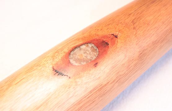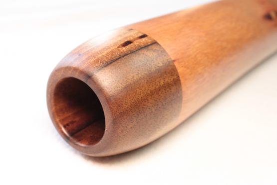 Concernant les embouchures, je façonne pour chaque instrument une embouchure rapportée en bois type frêne, ormes, poirier, noyer, Buis ou autres afin d'assurer un confort optimal mais surtout la stabilité de l'instrument. Pour le traitement intérieur, j'utilise la résine écopoxy (Résine époxy de qualité supérieure biosourcée) pour assurer la stabilité de l'instrument dans le temps. J'incruste une opale boulder à chaque instrument à l'endroit qui me paraît le plus judicieux, souvent là où le didg possède un trou de banche ou que les termites ont fait un trou d'aération. Et pour la finition extérieure, j'utilise une huile dure en plusieurs couches afin d'obtenir un rendu plus naturel et satiné, loin de la finition époxy bien trop glossy à mon goût.