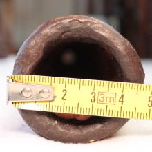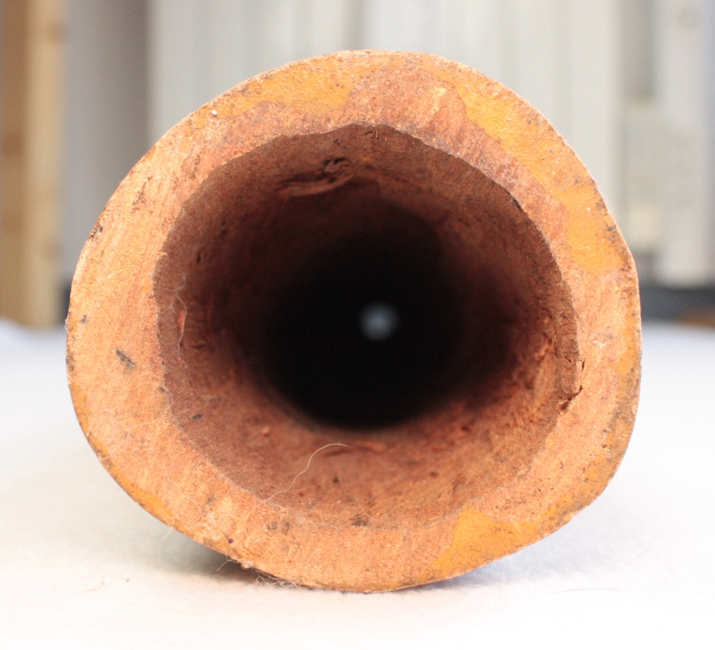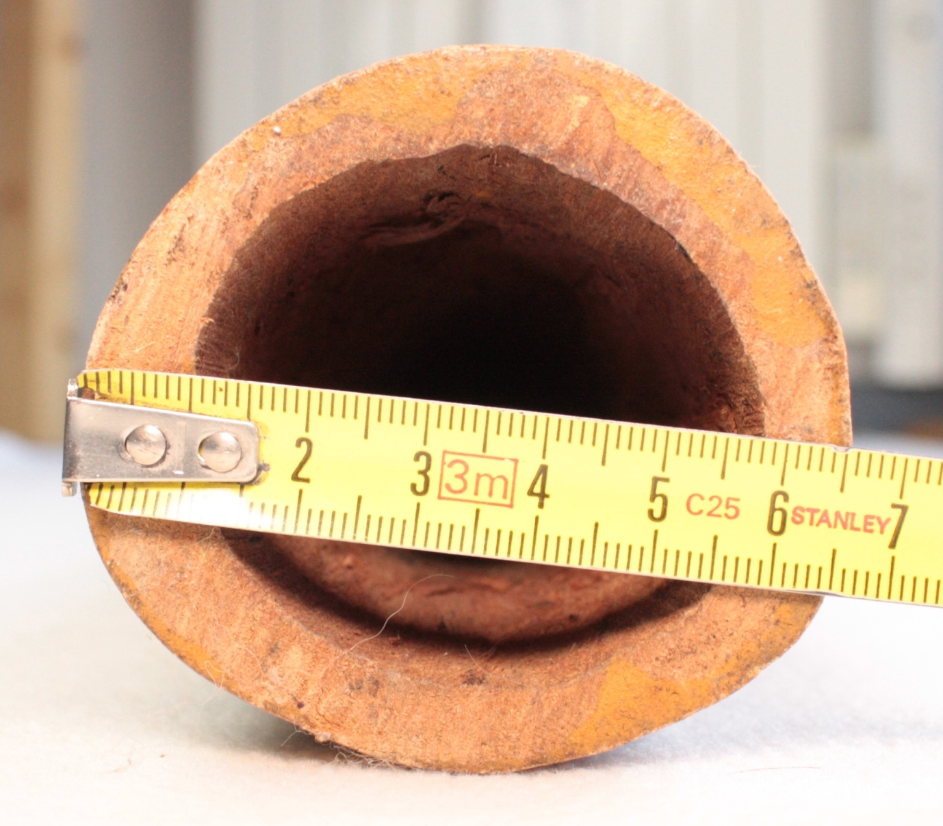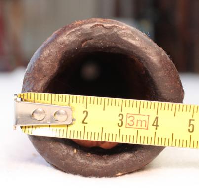Les diamètres sont mesurés au pied à coulisse, au départ de la colonne d'air après l'embouchure. Attention ce ratio est très fiable pour un didgeridoo avant une colonne d'air avec un travail interne quasi 'lisse'. Dans le cas des instruments avec des zones de compressions, ou boules de résonance, comme ceux de Dubravko, ce ratio est difficilement calculable avec 100% de certitude. Egalement pour les didgeridoos en eucalyptus avec des galeries de termite, il arrive que le diamètre de départ de la colonne d'air ne soit pas cylindrique et fasse par exemple 4.4x3.8cm. Dans ce cas je prends comme valeur de diamètre de départ de colonne, la moyenne de ces deux chiffres. A savoir: (4.4+3.8)/2=4.1cm. Il en va de même pour la valeur de la cloche. Cela permet de donner une approche du caractère instrumental assez fidèle mais qui ne peut être mesurée avec 100% d'exactitude.