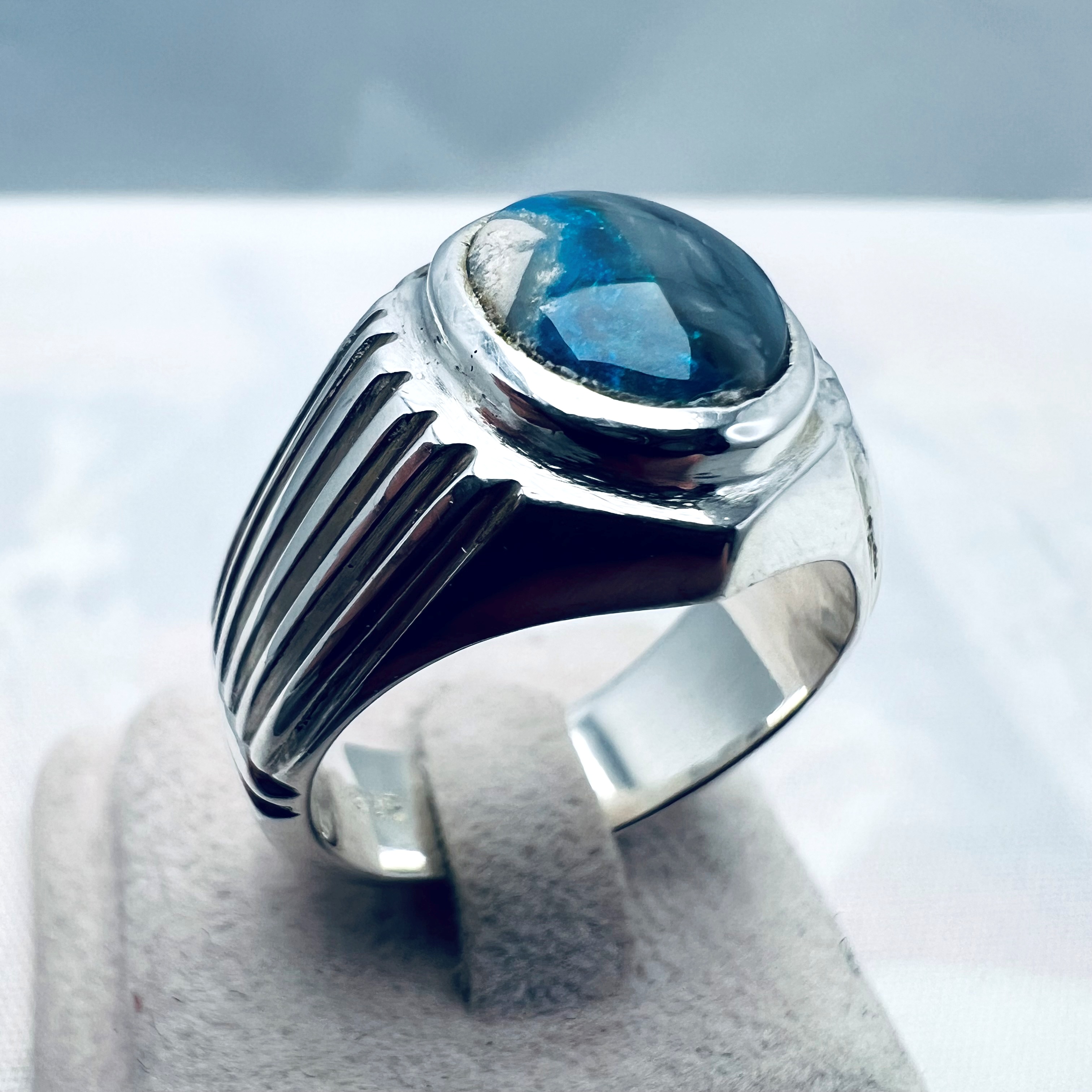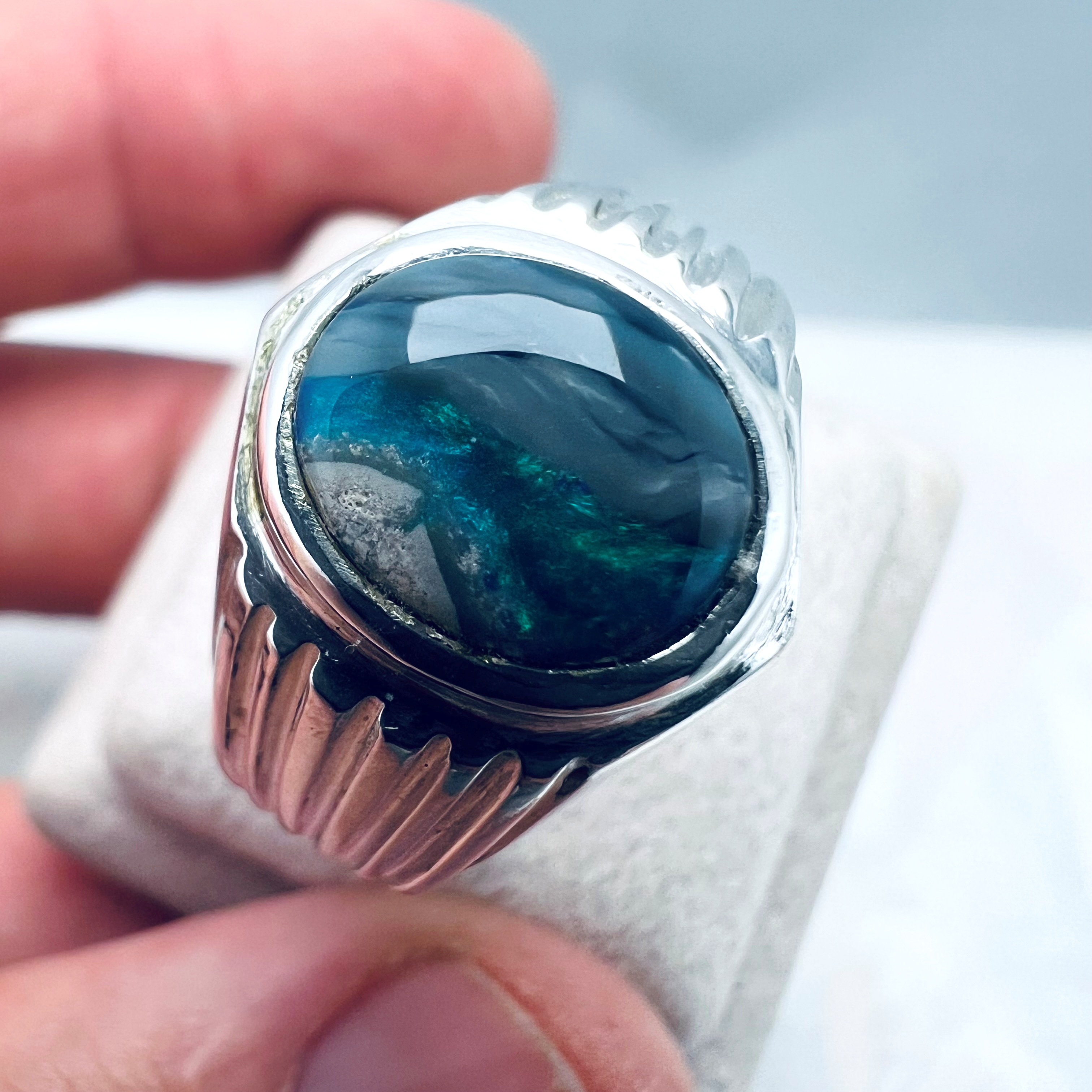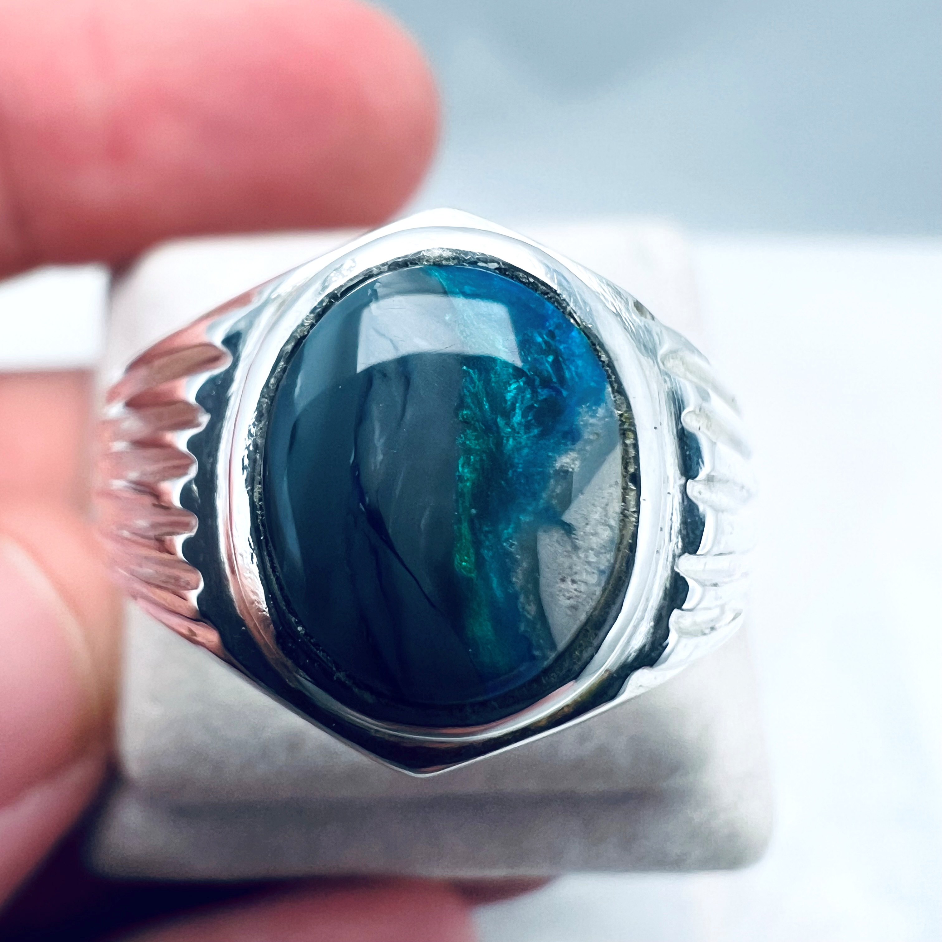 Chevalière Opale Semi-noire Lightning Ridge B217