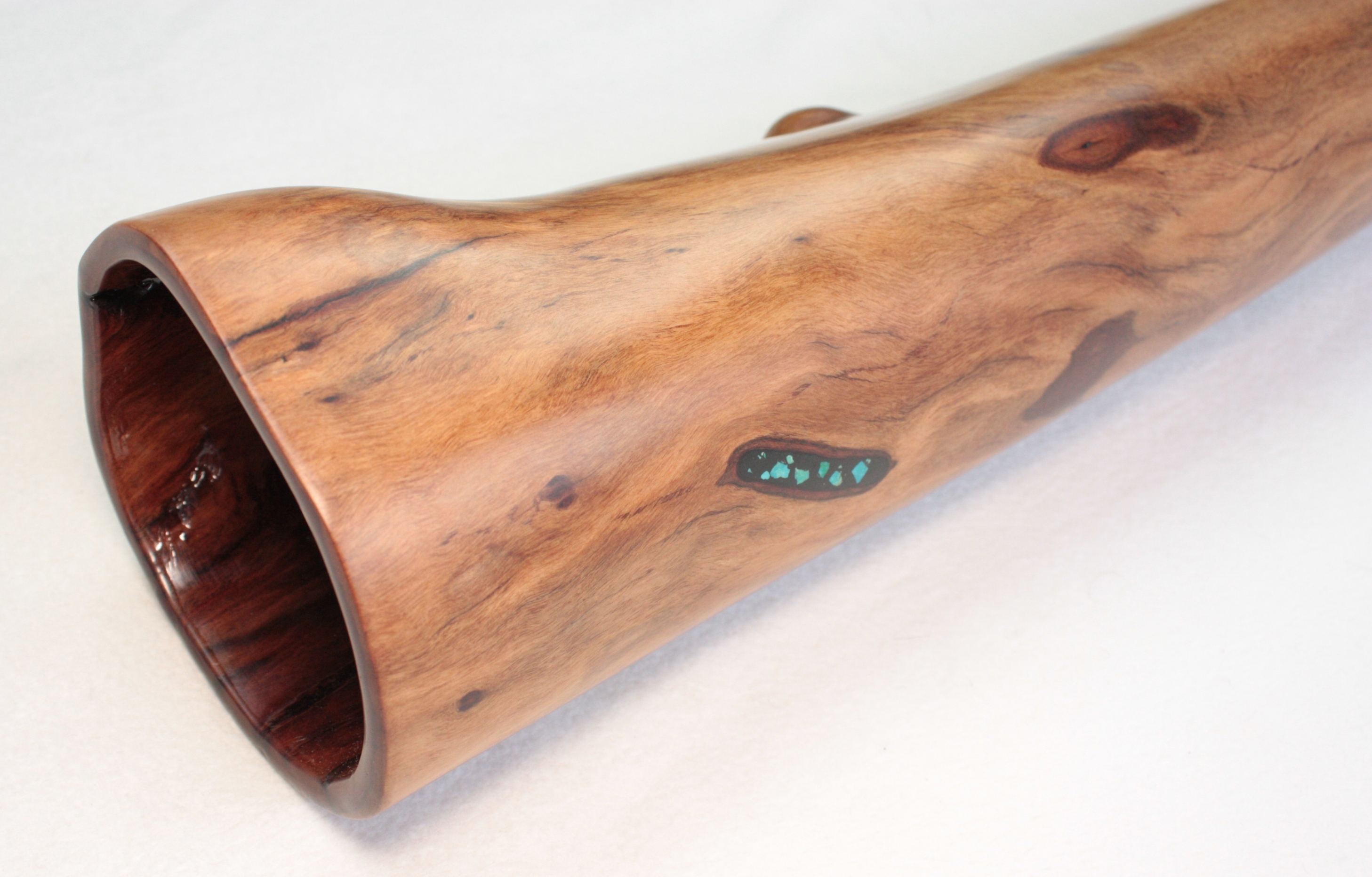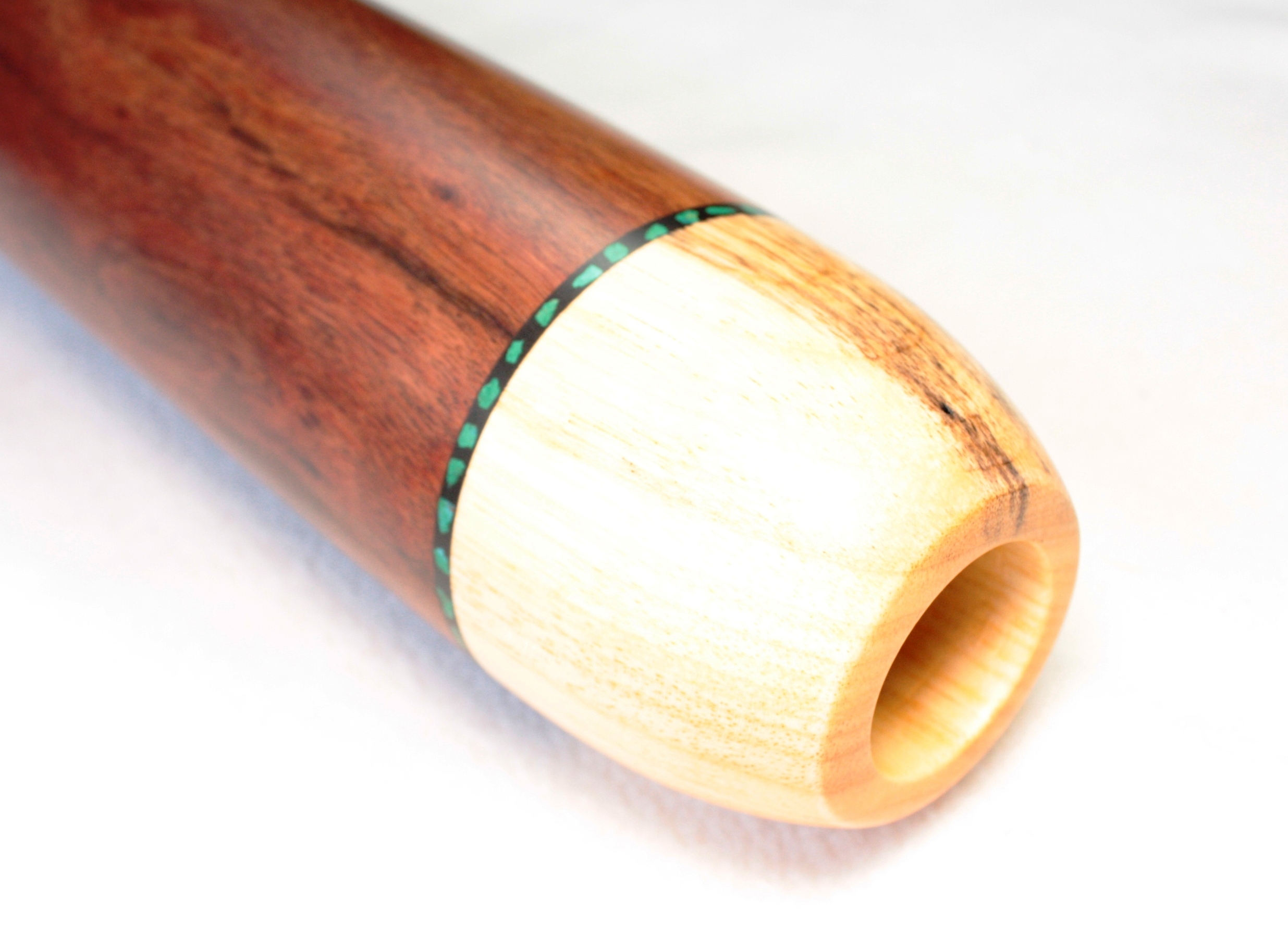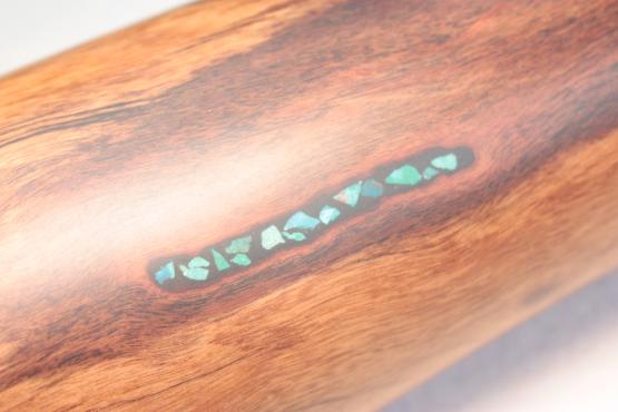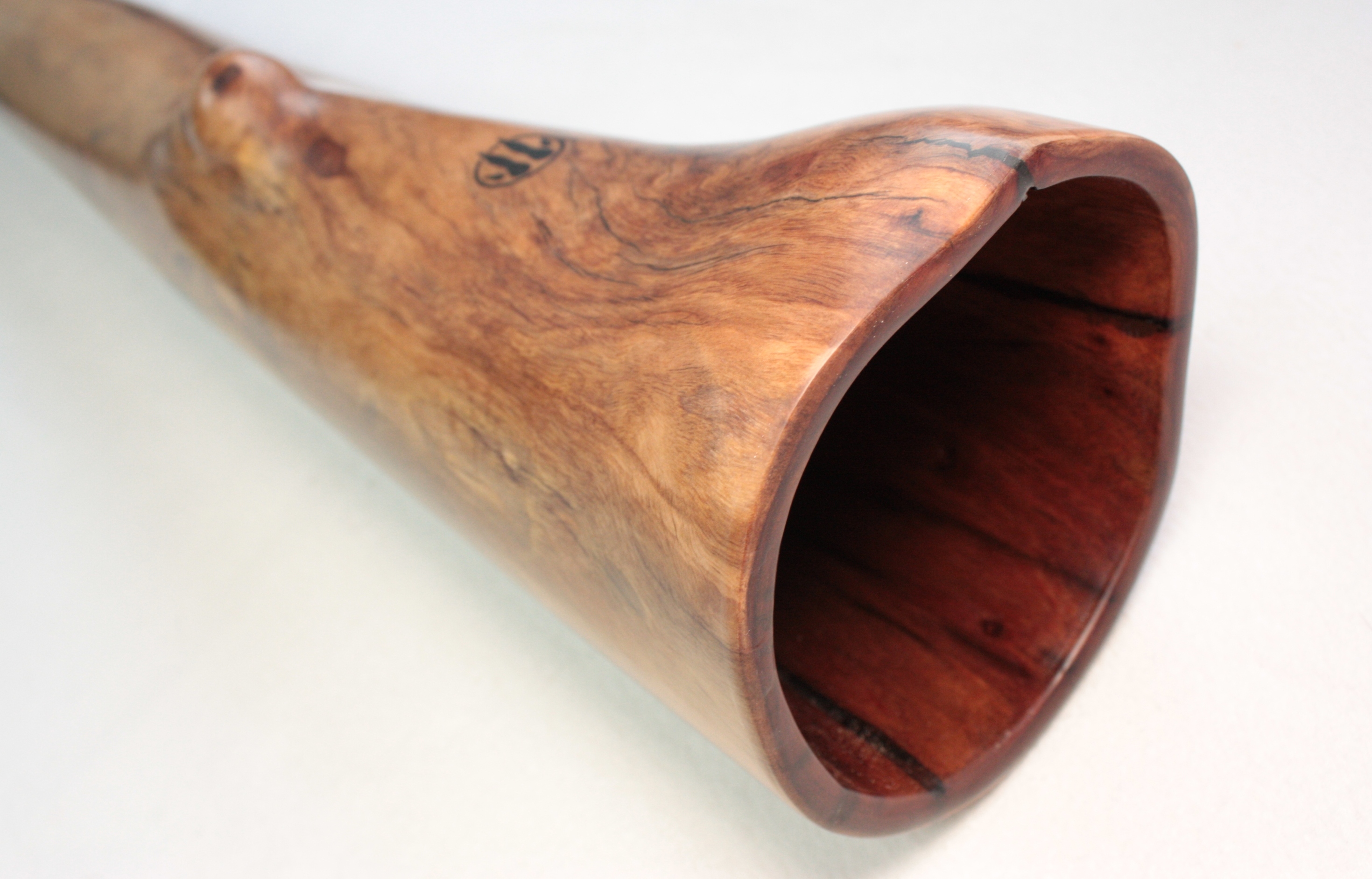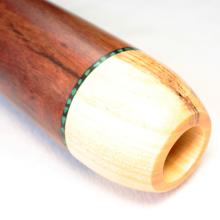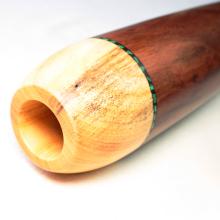 Soit le trou naturel est du bon diamètre et dans ce cas Bruce travaille l'embouchure de manière naturelle. Soit il insère une embouchure en camphrier bois reconnu pour ses qualités antibactériennes. Bruce et le seul fabricant à utiliser ce genre de technique d'insert. Un vrai plus pour obtenir une embouchure des plus confortables et antibactériennes.