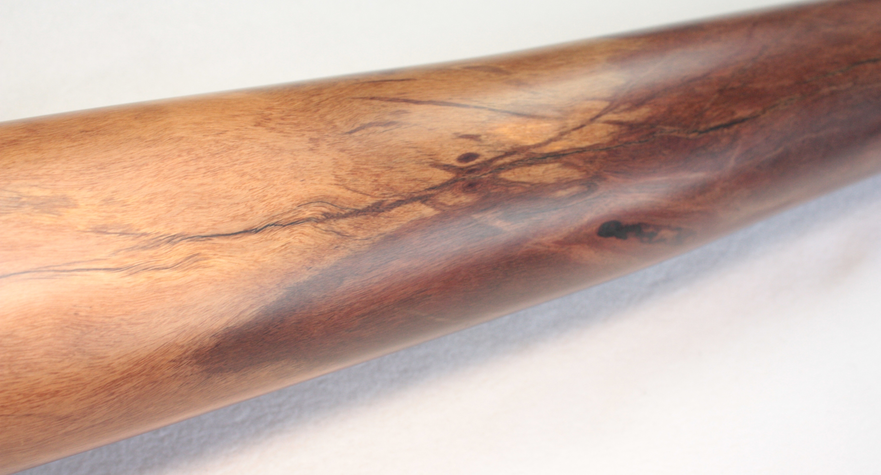 Tous ses didges termités sont issus du Nord de Queensland et coupés par un propriétaire Aborigène de renom. Tous ses troncs ont été séchés pendant 12 mois minimum avant d'être travaillés. Bruce n'utilise pas de cire pour réduire la taille de ses embouchures.