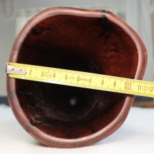 Les diamètres sont mesurés au pied à coulisse, au départ de la colonne d'air après l'embouchure. Attention ce ratio est très fiable pour un didgeridoo avant une colonne d'air avec un travail interne quasi 'lisse'. Dans le cas des instruments avec des zones de compressions, ou boules de résonance, comme ceux de Dubravko, ce ratio est difficilement calculable avec 100% de certitude. Egalement pour les didgeridoos en eucalyptus avec des galeries de termite, il arrive que le diamètre de départ de la colonne d'air ne soit pas cylindrique et fasse par exemple 4.4x3.8cm. Dans ce cas je prends comme valeur de diamètre de départ de colonne, la moyenne de ces deux chiffres. A savoir: (4.4+3.8)/2=4.1cm. Il en va de même pour la valeur de la cloche. Cela permet de donner une approche du caractère instrumental assez fidèle mais qui ne peut être mesurée avec 100% d'exactitude.